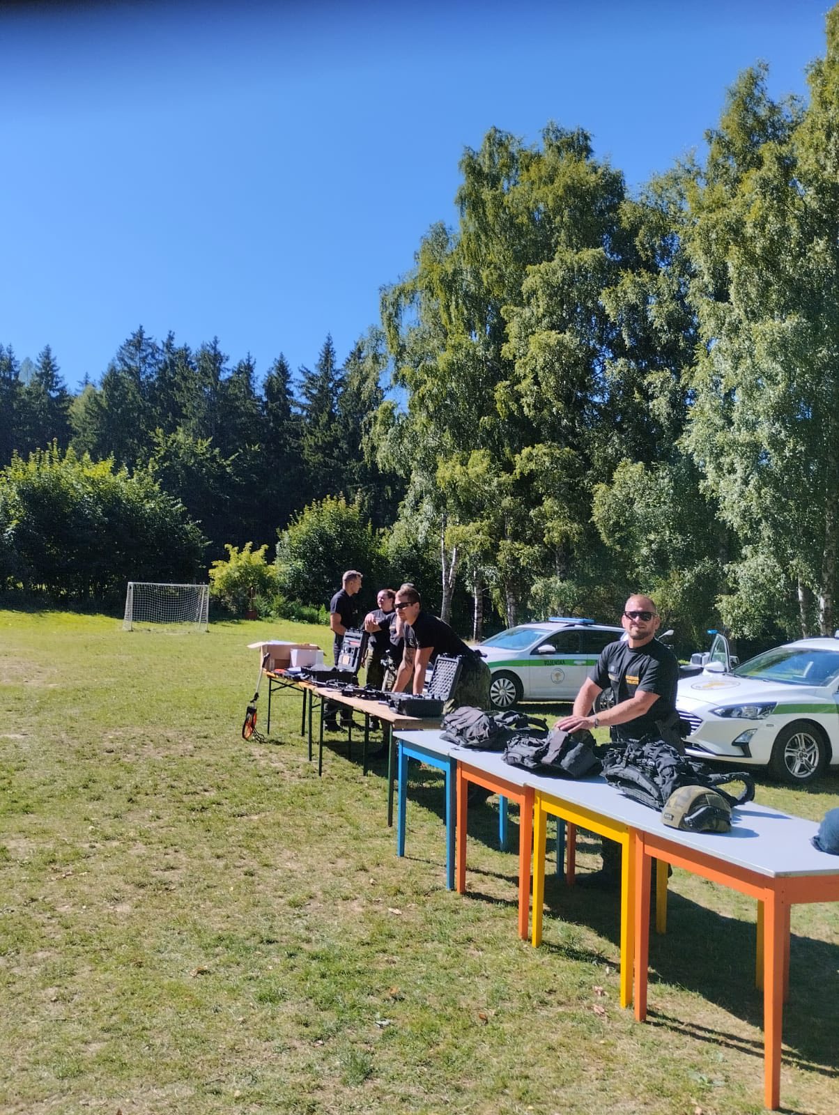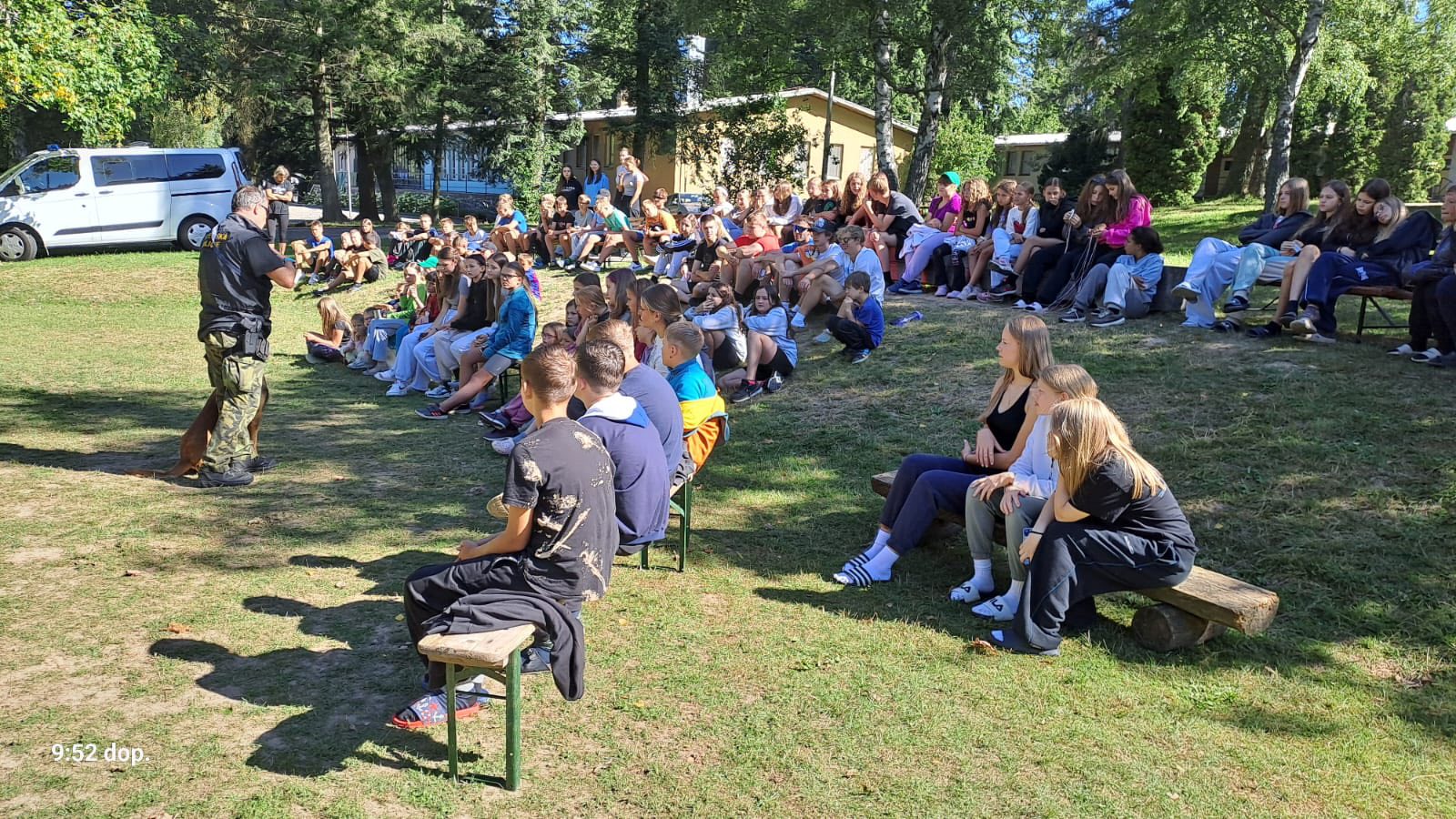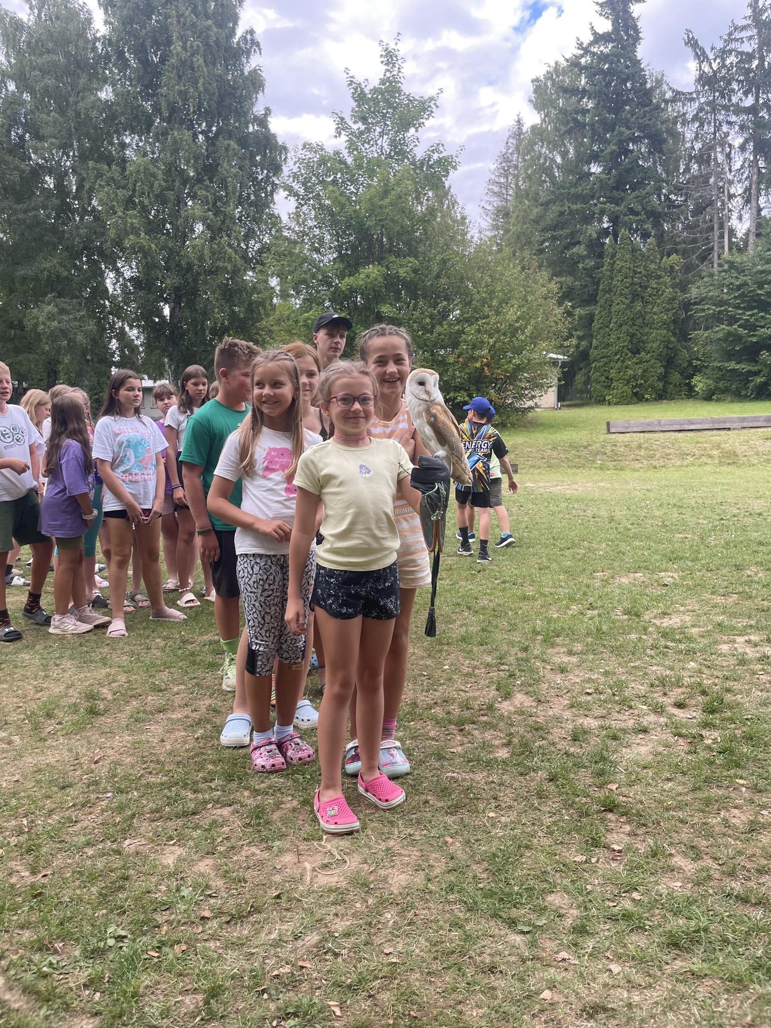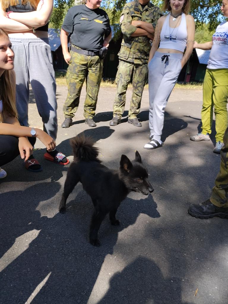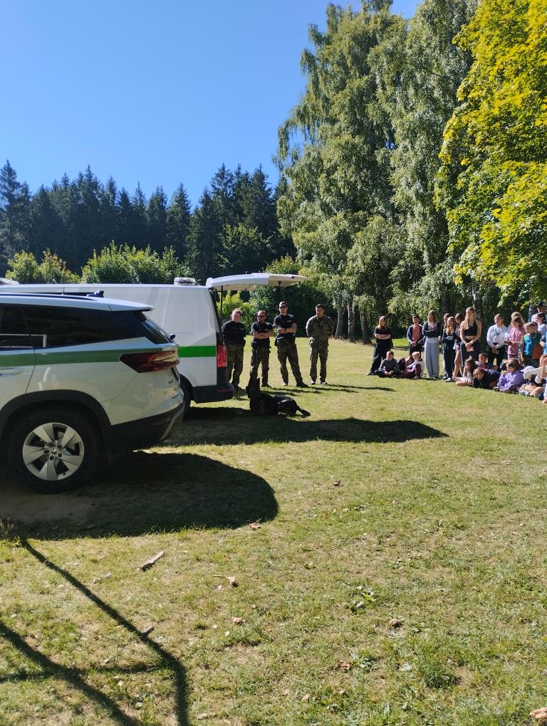 Svoji odvahu a nejen tu, jsme osvědčili také při návštěvě sokolníka. Ti největší borci si na svých rukou vyzkoušeli práci s naší největší sovou nebo nejrychlejšími dravci a poznali jsme i neskutečnou chytrost krkavce „Rumburaka.“ Naše dobrodružství pokračovalo i při návštěvě příslušníků vojenské policie. Dozvěděli jsme se, a pak i viděli, jak se cvičí psi na  výbušniny, drogy, vyhledávání osob. Naše nadšení a zvědavost vzbudily služební motorky, zásahová auta, jejich vybavení, výstroj a výzbroj vojáků. Obdivovali jsme jejich odvahu. Většina z nich má za sebou několik zahraničních misí.